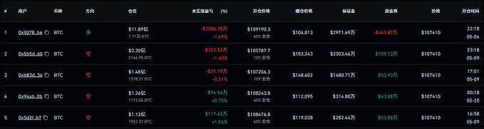 除他以外,前5名持仓剩下的四头鲸鱼都是虎鲸了...