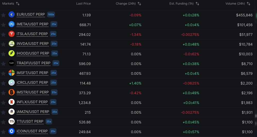 Helix 是一個基於 Injective 構建等去中心化加密貨幣交易所,主要用於交易跨鏈現貨和永續合約市場。同時其也支持使用 USDT 交易部分美股,包括 META、TSLA、NVDA、MSTR 和 COIN 等 13 支美股。