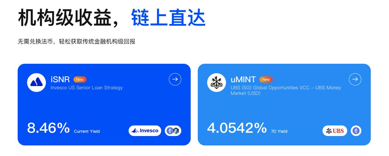 DigiFT 目前共推兩款產品,分別為與景順美國高級貸款策略表現掛鉤的結構性票據 iSNR 和 UBS-USD 貨幣市場投資基金代幣 UMINT。經過 KYC 認證的用戶可在以太坊主網上使用 USDC 等穩定幣購買這兩款產品。