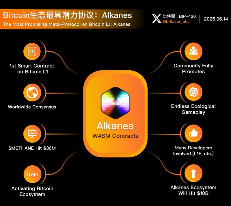 #Alkanes 是一個基於 Bitcoin 的應用層元協議,旨在通過 Protorunes 協議和 OP_RETURN 輸出,在 Bitcoin L1 上實現智能合約功能,並且是第一個上線主網的協議,支持去中心化應用(dApp)開發,例如去中心化 DEX 等。
