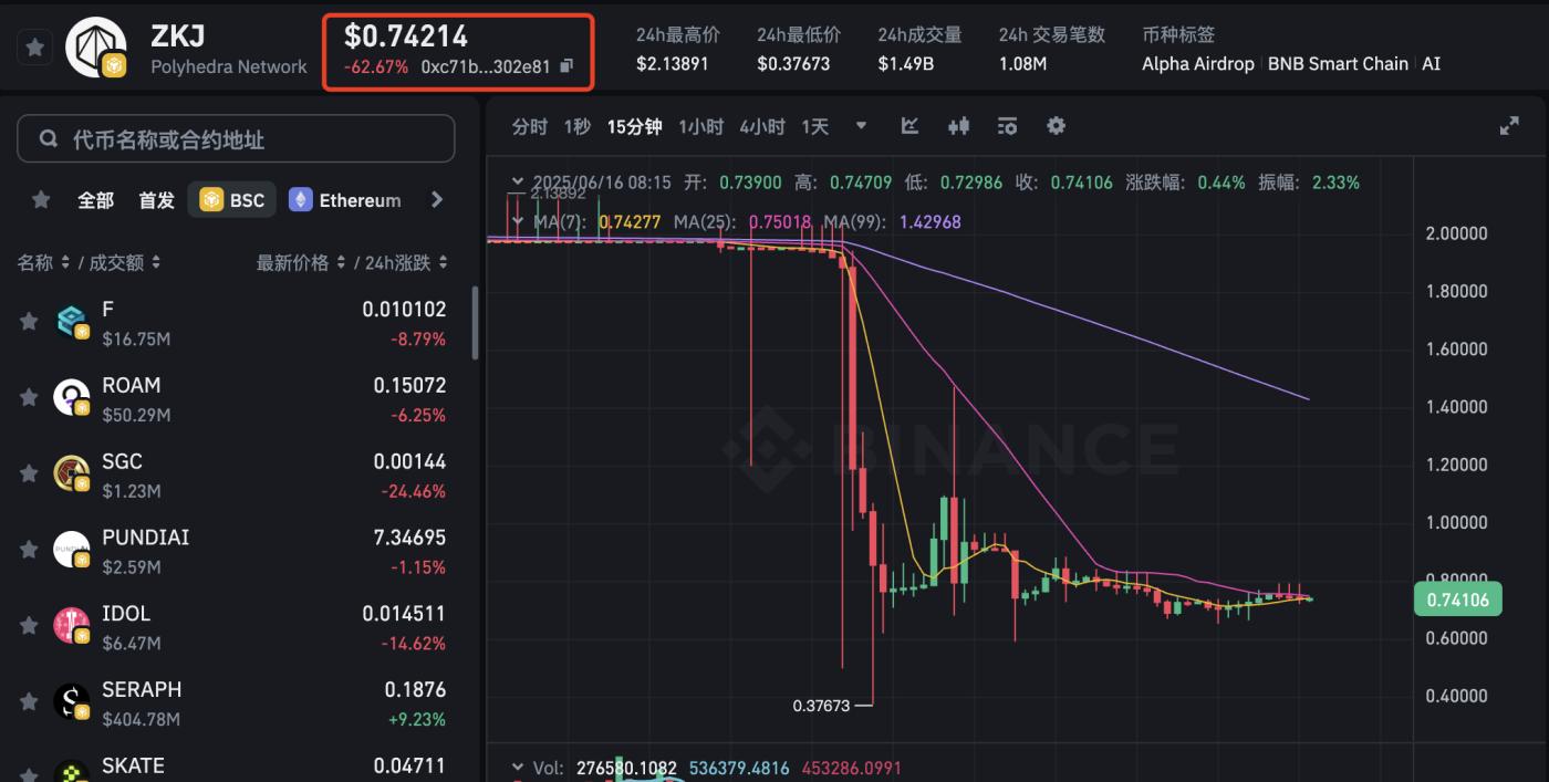 Binance Alpha 上的 BSC 鏈上 ZKJ 代幣價格