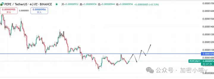 #PEPE :現在多是有點逆勢操作,止筍得乖乖放在 90 下方才穩。真正打破下跌結構的關鍵在 105,一旦有效突破才算轉強。不過從現在的節奏來看,感覺還沒震夠,就算要上,估計也得再來一輪震盪蓄力。