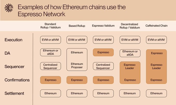 隨著越來越多的rollups推出,協調變得至關重要。@EspressoSys為rollups提供基礎設施,使其能夠保持獨立性,同時受益於共享安全性和互操作性。