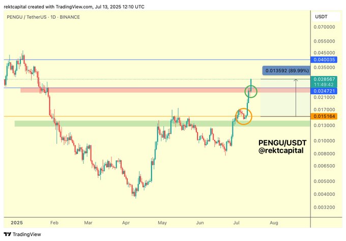However, #PENGU would need to simply Daily/Weekly Close above it to rally higher