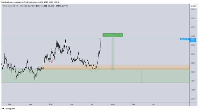 我在CVX的買入區間獲得了接近100%的收益……僅僅一週時間。 這一切都在我之前的YouTube影片中提前預告過——那些觀看了影片的人已經做好了充分準備。 為了提供一些參考,這就像大餅從10萬漲到20萬,而我們是在一週內完成的,並且我認為到週期結束時我們還有10-20倍的增長空間。 這就是為什麼我一直說你現在的關注點應該放在替代幣上,你將在替代幣上看到的收益將遠遠超過大餅在本週期剩餘時間的收益。 (這也是為什麼你應該收看我的YouTube影片!)
