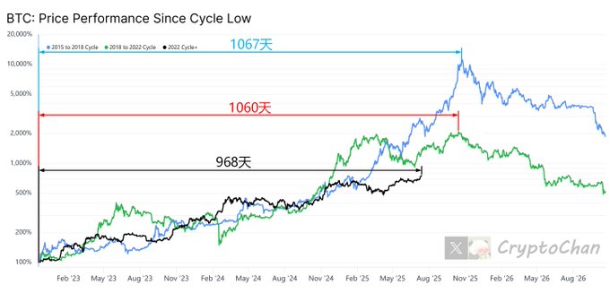 【#BTC 指標更新】 15年熊底過後 1067天 到牛頂 18年熊底過後 1060天 到牛頂 當前22年熊底已過去 968天