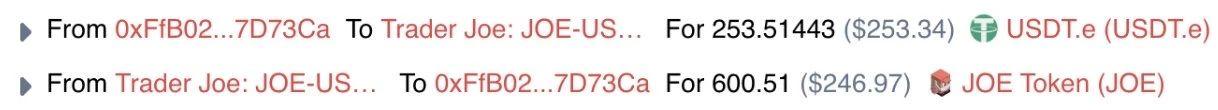 如果你曾經好奇為什麼大多數區塊鏈上的交易看起來大多是隨機金額的兌換,而沒有人會有意識地進行這樣的交易,統計套利(statarb)就是原因。世界上沒有哪個人類投機者會某天醒來決定他寧願持有 600.51 個 JOE 而不是 253.51 個 USDT.e(注意這裡的美元價值反映的是我截圖時的價格,而不是交易執行時的價格;這位交易者在這筆兌換中並沒有虧損 7 美元)。相反,是其他交易場所的一筆交易稍微打破了 JOE/USDT 的價格平衡,而這個機器人意識到它可以賺取 0.05 美元的利潤。