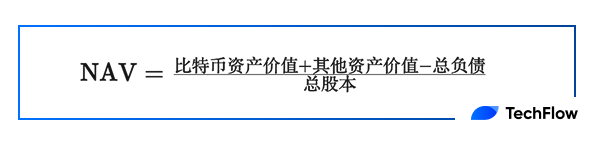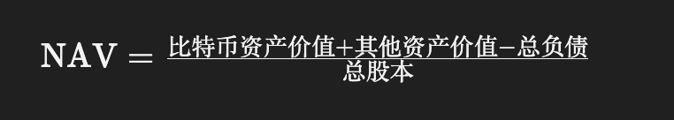 像 MicroStrategy(微策略)這樣的公司,其 NAV 的計算方式會特別強調其比特幣持倉的價值,因為這部分資產佔據了公司總資產的絕大部分。