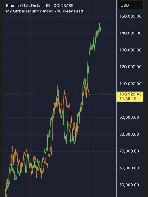 Green candle = Global M2 Money Supply 📈