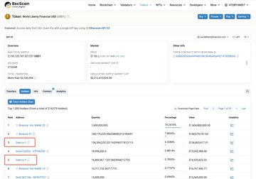目前絕大部分的 USD1 位於 BSC 鏈、小部分在 ETH 鏈。Gate 目前在 BSC 鏈持有約 $1.7 億枚 USD1 (交易所持有第二)、ETH 鏈上持有約 2000 萬枚 (交易所持有第一)。這跟他們目前的 Launchpad 打新的 USD1 投入總量 1.96 億枚比較吻合。
