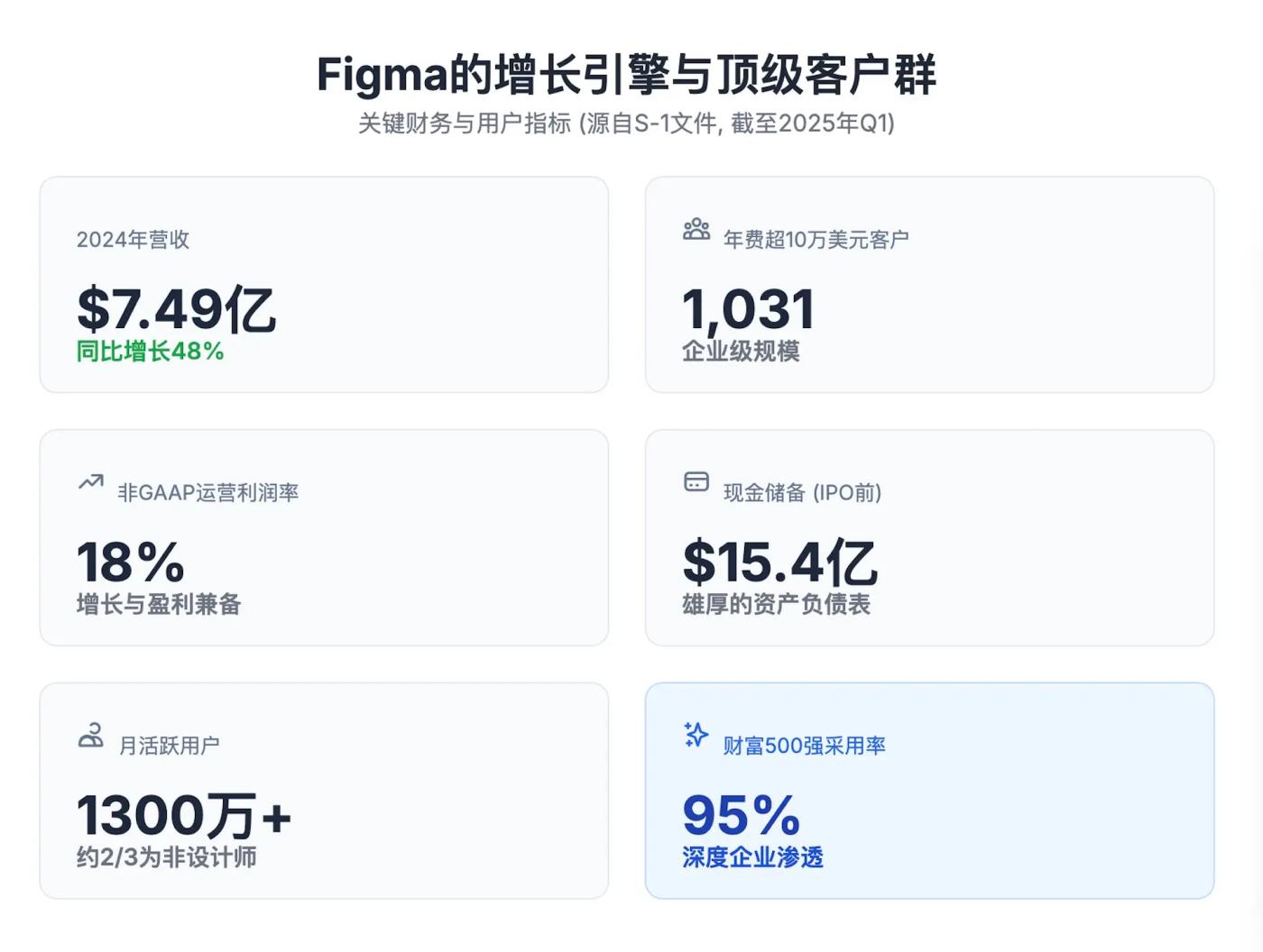 用戶基礎:平臺月活躍用戶(MAUs)超過1300萬,其中約三分之二為非設計人員(如產品經理、工程師、市場人員等)。這表明Figma已成功"破圈",從設計師的專業工具擴展為整個產品團隊的協作平臺,極大地拓寬了其潛在市場空間(TAM)。
