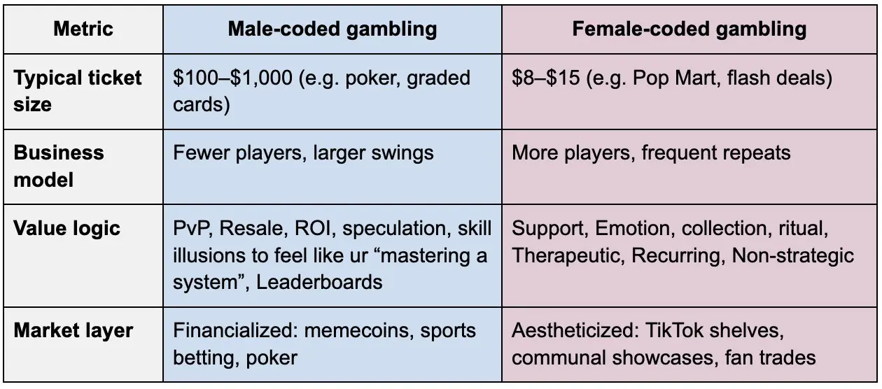 賭博並不總是像撲克籌碼和拉霸機那樣。有時它看起來像粉色兔子、盲盒和低語的 TikTok 影片。在購物療法和輪盤賭之間,一種針對女性消費者的新行為習慣開始循環出现。相同的隨機獎勵機制,但有著完全不同的賭注、氛圍和心理。