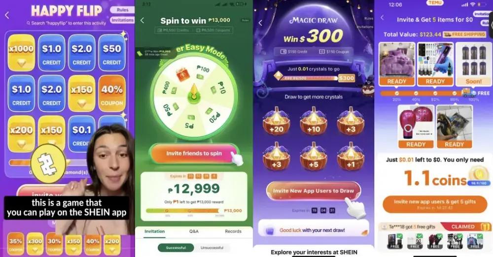 Temu 和 Shein 的應用一半用於購物,另一半是“社交賭博”小遊戲,可以用來解鎖商品折扣。這很真實,而且很容易上癮。