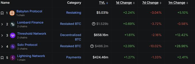 比特幣去中心化金融(DeFi)不再是一個模糊的概念,它正蓬勃發展,現在在總鎖倉價值(TVL)中排名第4,已超過67億美元。 在這其中,超過15億美元在@Lombard_Finance上,佔比近25%的比特幣去中心化金融。 這並非偶然。 Lombard不僅僅是鎖定價值。它正在解鎖比特幣,將其從"價值儲存"轉變為新的鏈上經濟基礎設施。 不再僅僅是一種資產,大餅現在是資本。 不再僅僅是一個想法,它是一種工具。 不再僅僅是過去,而是未來。 比特幣正從基礎層開始重建。 而Lombard正在引領這場變革。
