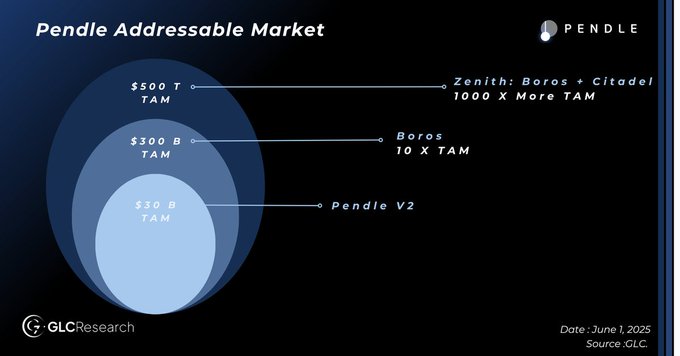 @Pendle_fi 的收益飛輪持續擴大, 潛在市場規模達到百兆美元規模。
