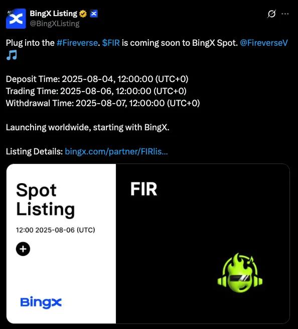 在短短兩天內,Fireverse 接連登陸 Binance Alpha、BingX、Gate 等多家頂級交易平臺,每一次上線都引發市場高度關注,堪稱一次次“幣圈小地震”。