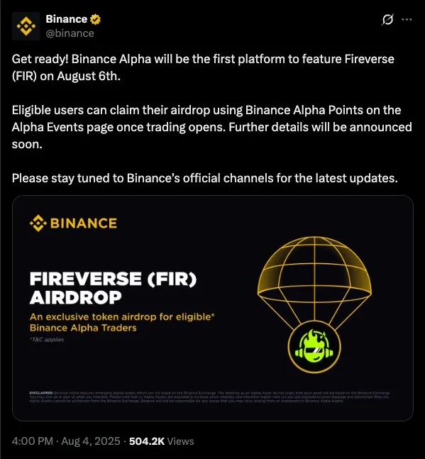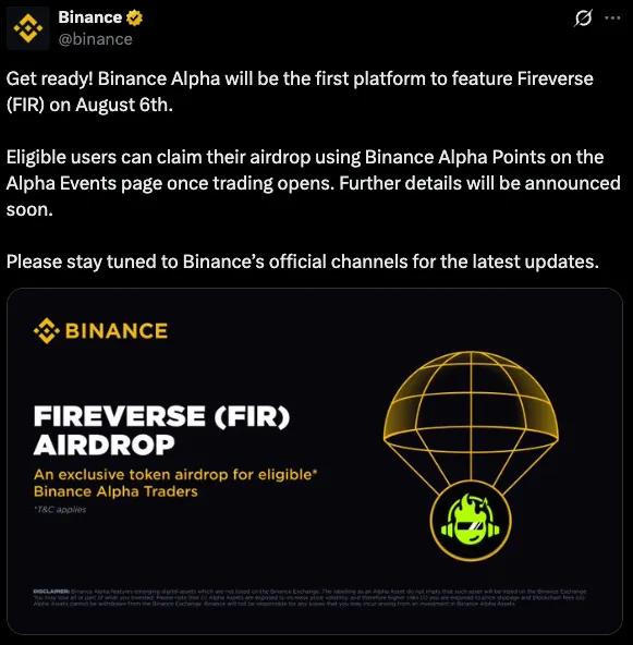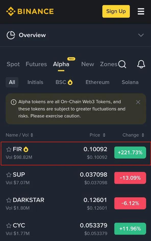 就在8月6日,Fireverse代幣$FIR空降 Binance Alpha,上線瞬間即引爆全場。幣價開盤即暴漲超3倍,全天交易量一舉突破 1.3 億美金 USDT!次日更是毫無懸念登頂 Binance Alpha 熱度榜榜首,成為市場最炙手可熱的焦點。 Binance 作為全球區塊鏈生態中最具影響力的貨幣交易平臺之一,Binance Alpha匯聚了來自世界各地最為活躍和核心的鏈上交易用戶群體。在這一頂級舞臺上,Fireverse能夠脫穎而出,奪得日榜第一的位置,絕不僅僅是項目熱度的簡單體現,更是對其產品實力和市場競爭力的強有力背書。