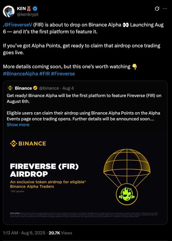 如果說交易數據代表了幣圈的“硬核指標”,那社交平臺的刷屏,則直接證明了Fireverse在全球Web3世界的“存在感”。