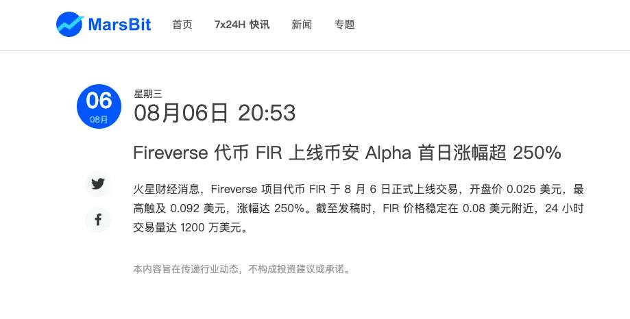 當社交平臺的熱度浪潮持續發酵時,各大主流區塊鏈與財經媒體也迅速進入“全網追蹤”模式。無論是頭部快訊平臺,還是深度報道型媒體,都在第一時間跟進 Fireverse 的動態——從上線動態,交易數據到項目故事,形成了全方位、立體化的曝光矩陣。