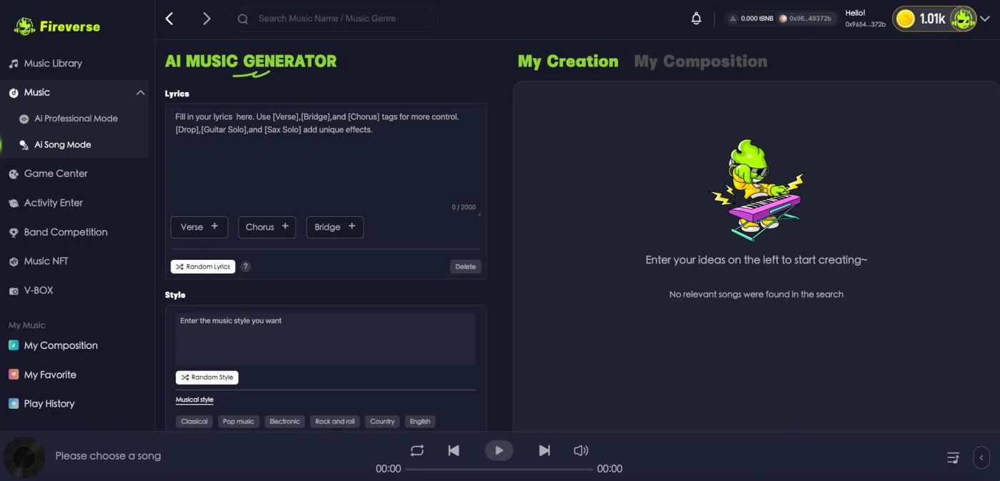 它融合了AI音樂生產工具、NFT市場、排行榜激勵、DePIN借點等多重模塊,打造出一個音樂創作—確權—傳播—收益的完整閉環。用戶不再只是旁觀者,而是真正參與者、獲益者。