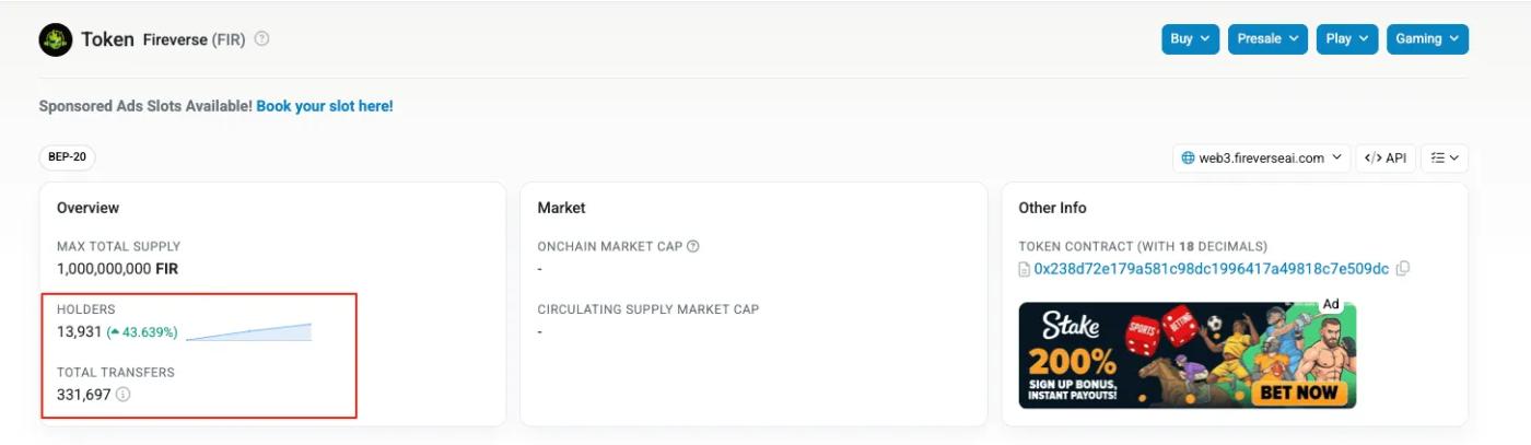 截至目前,Fireverse 項目展現出了強勁的市場活力與增長勢頭,持幣地址數量已突破13,000個,累計交易筆數更是超過33萬筆。這些數據不僅彰顯了Fireverse在市場中的廣泛認可與用戶參與度,更印證了其生態系統的蓬勃發展。項目熱度的持續攀升,宛如滾雪球般不斷放大影響力,市場聲量正迅速累積,勢能仍在持續增強,預示著Fireverse未來在區塊鏈領域更大的潛力與可能性。