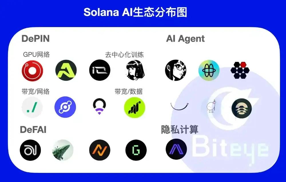 DePIN 概念的火爆讓 Solana 成為最早一批探索鏈上去中心化 AI 的公鏈,這些項目依託 Solana 區塊鏈強大的性能和低廉的價格,構建了各自的去中心化算力、帶寬、數據等網絡,也給 Solana AI 生態打下了早期的基礎。