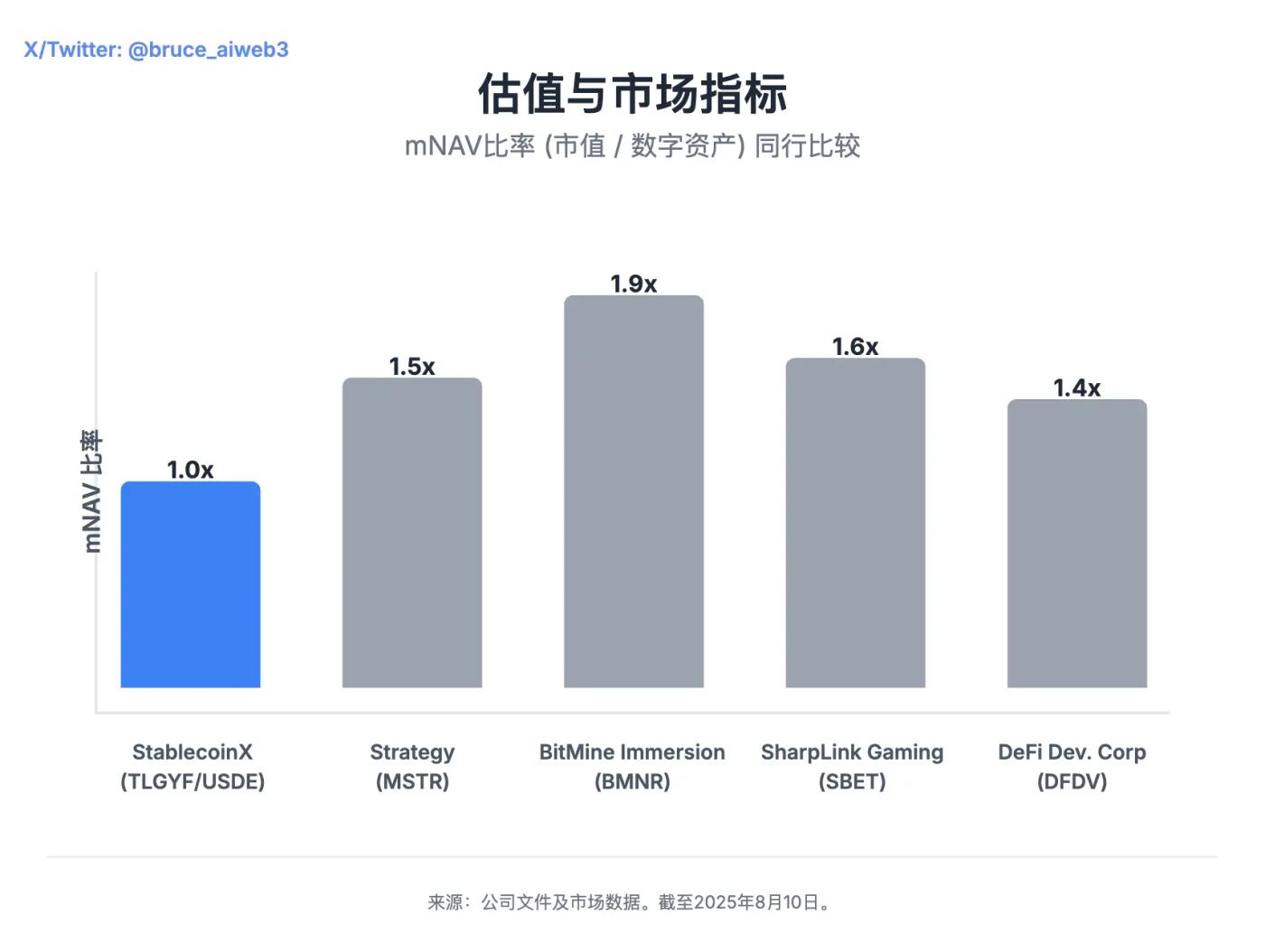 mNAV(市值與數字資產價值比) 比率:約 1×,顯著低於 MicroStrategy(1.5×)和 BitMine Immersion(1.9×),存在估值折價空間。