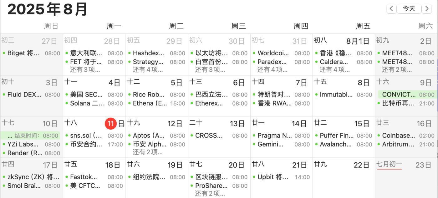 本週(2025 年 8 月 11 日 - 8 月 18 日)Web3 大事件不容錯過,下圖是本週精彩預告: