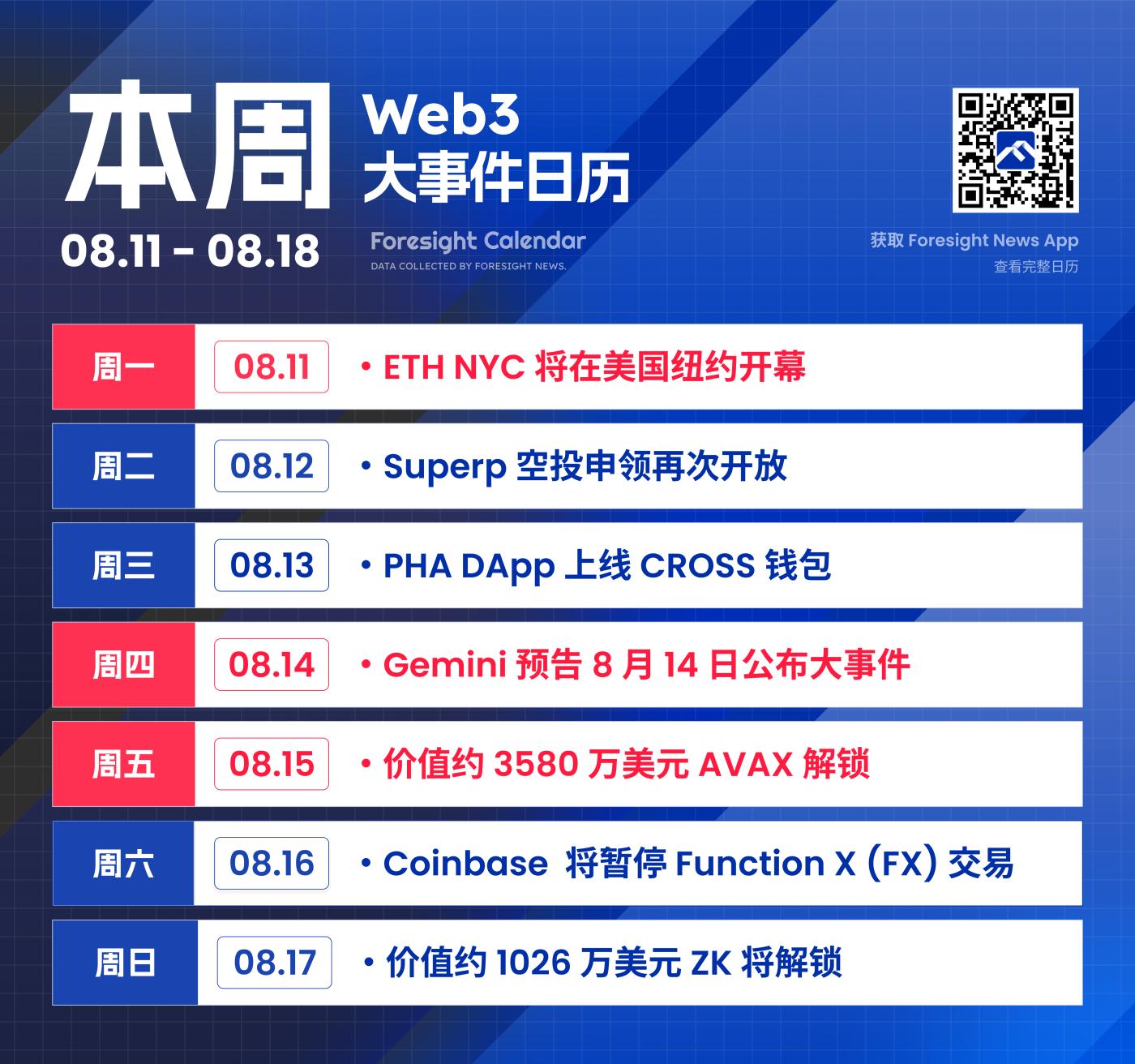 未來一週最值得關注的行業大事件及項目重要進展,一鍵訂閱,隨時隨地掌握市場脈搏。
