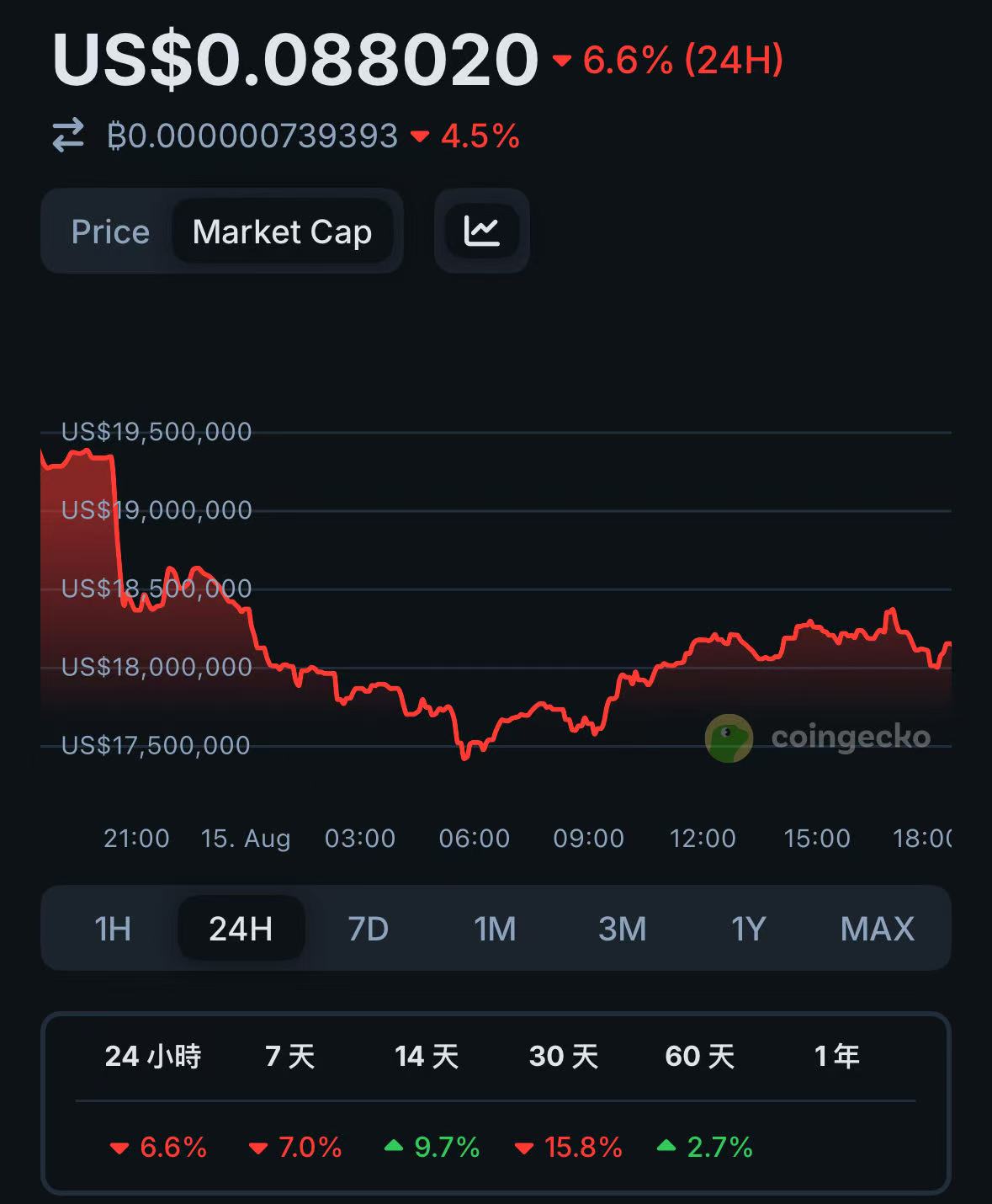 據 CoinGecko 數據顯示,撰稿當下 CATI 代幣暫報 0.088 美元,近 24 小時下跌了 6.6%,市值約為 1,800 萬美元。