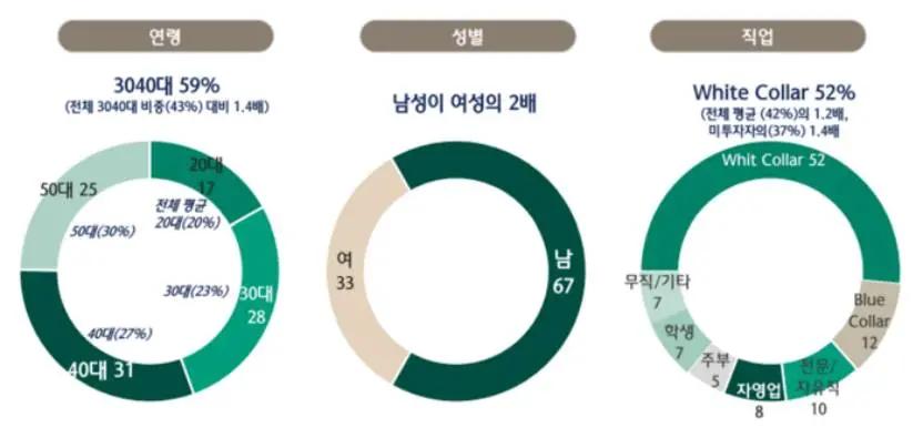 這一數據反映出了韓國加密投資者的熱情可能遠超我們的想象,這一點從韓國加密投資者的數據構成中也可以得到印證。