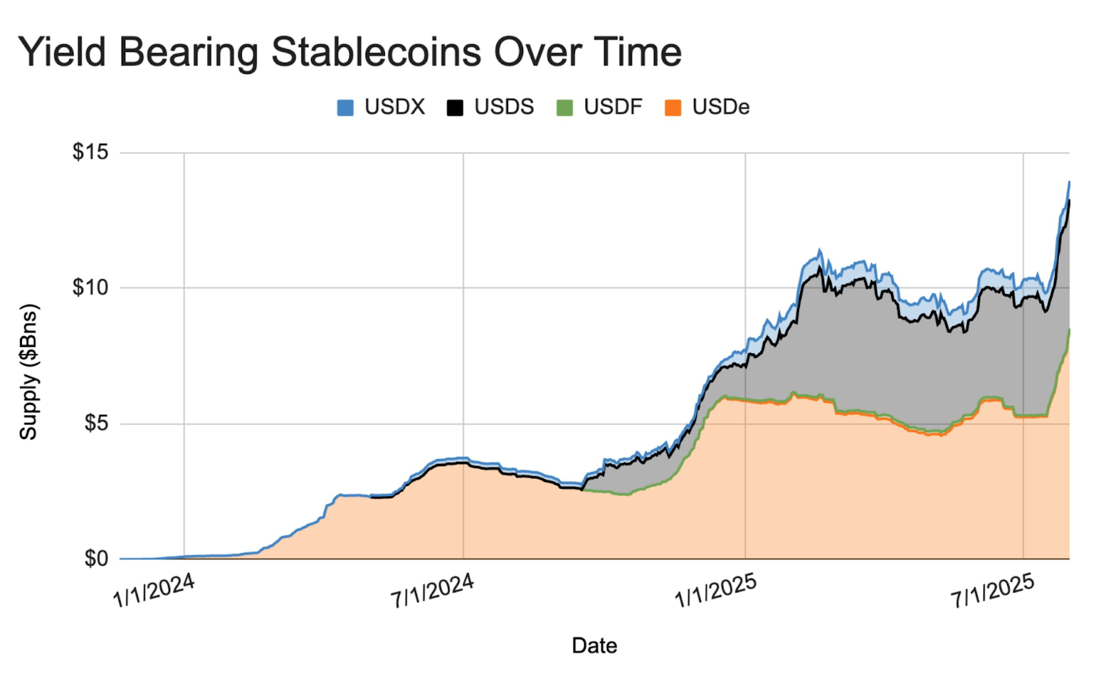 事實上,分析公司 Artemis 的聯合創始人 Anthony Yim 本月早些時候在X 的一篇文章中指出,自《GENIUS 法案》獲得批准以來,收益型穩定幣正成為“意外的贏家”,儘管根據擬議法案,穩定幣在美國受到限制,但其供應量仍在激增。根據該法案——該法案明確側重於用於支付的與美元掛鉤的穩定幣——穩定幣發行人不能直接向持有人提供收益。