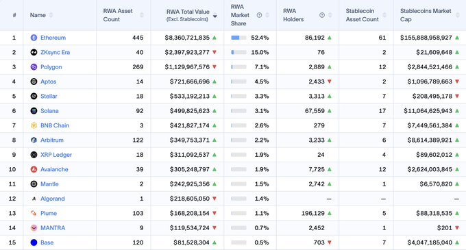 Real World Asset (RWA) value for @avax has surpassed $200M for the first time, per @RWA_xyz. Nearly 8K RWA holders own 39 assets. Avalanche ranks #12 in RWA value across all chains, holding 1.3% of the market share.