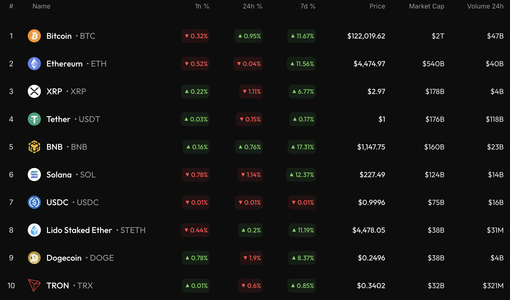 根據 CoinStats 的數據,排名前 10 的貨幣中大多數已回到紅色區域。
