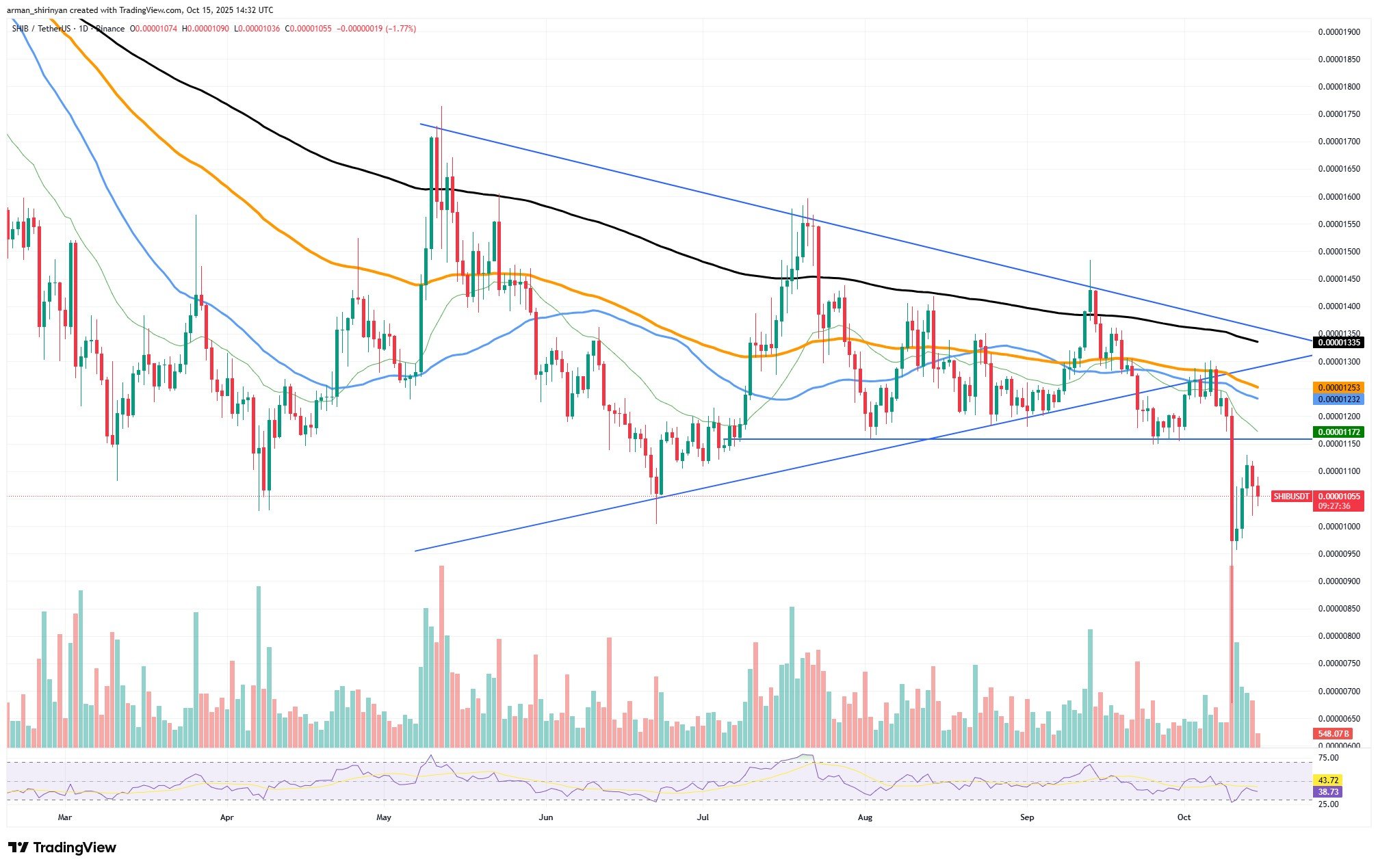 Shiba Inu已正式進入下行趨勢,其技術結構近期不容Optimism。在連續幾天接近重要支撐位後, SHIB已明顯跌破 0.0000110 美元區域,市場開始意識到該代幣實際上在其圖表上又加了一個零。這一發展代表著該meme幣種正在經歷重大的結構性和心理性變化。