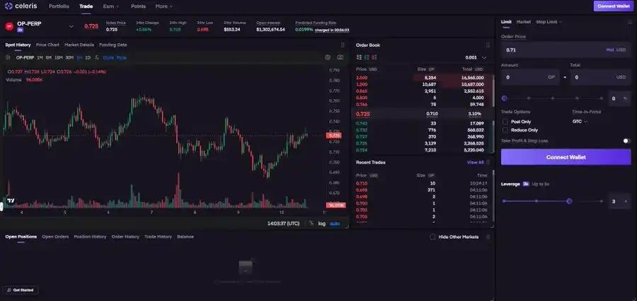 用戶可以將 Monad 測試網代幣存入 Celeris,在多個市場中交易永續合約,還可以嘗試流動性提供和借貸功能。