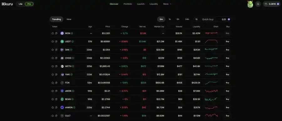 · 現貨 DEX:Kuru、Clober、Crystal、Capricorn