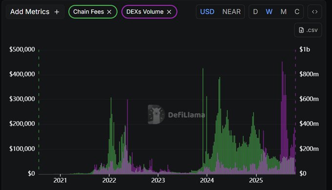 DEX 交易量飆升:NEAR 的 DeFi 生態系統活躍度大幅提升!NEAR 鏈上的 DEX 交易量在 30 天內達到 739,375 美元,這表明鏈上用戶參與度不斷提升。