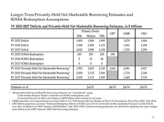 自2022年起,貨幣市場基金(MMF)和銀行這兩大現金邊際提供者擁有的現金量減少,無法再滿足回購市場的需求。在某個時間點,它們既不願也無法以等於或低於聯邦基金利率上限的利率在回購市場提供現金。同時,能夠以合理利率供應回購市場的現金供應量下降,而對現金的需求卻上升了。需求上升的原因是,前美國總統拜登和現任總統川普持續大手筆支出,需要發行更多國債。這些國債的邊際買家——再融資基金(RV基金)——必須在回購市場為這些購買行為融資。如果它們無法每天以等於或略低於聯邦基金利率上限的利率穩定獲得資金,它們就不會購買國債,美國政府也無法以可負擔的利率進行融資。關於這個問題的更深入探討,請閱讀我的文章《滑雪切口》(Ski Cut )。