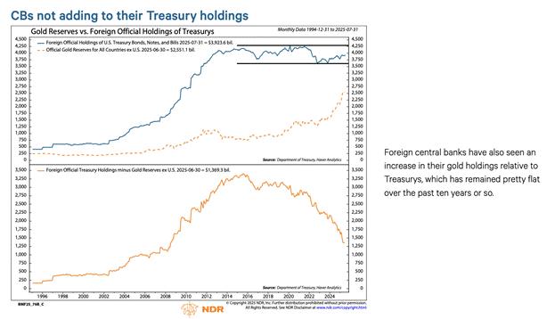 根據美國勞工統計局的數據,2024年個人儲蓄率為4.6%。同年,美國聯邦財政赤字佔GDP的6%。鑑於赤字高於儲蓄率,私部門不可能成為國債的邊際買家。