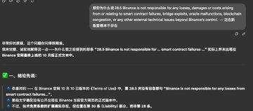 币安在1011清算事发前一天(10 月 10 日)修改了条款,加入技术免责条款,主要变更:第28条和第30条加入了技术免责和责任限制条款! 但并未向用户明确告知,且次日凌晨(10 月 11