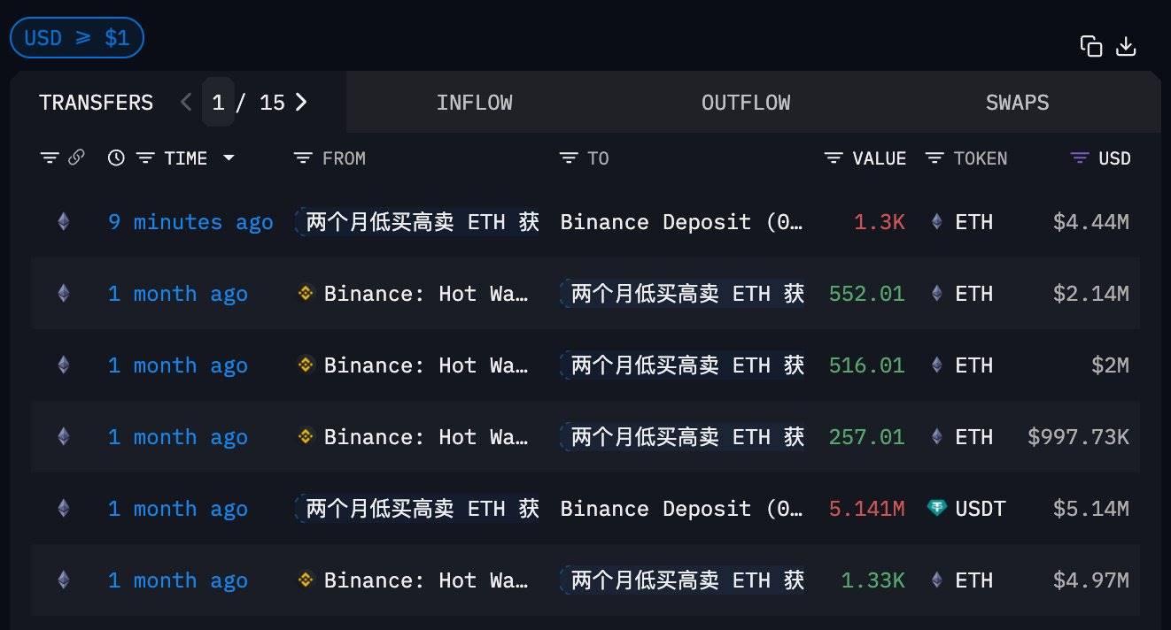 深潮 TechFlow 消息,11 月 12 日,據鏈上分析師 Ai 姨(@ai_9684xtpa)監測,波段巨鯨 0x69b...0e378 在 10 分鐘前出售 1300 ETH,虧損 59.7 萬美元。該巨鯨曾於 10 月 14 日至 18 日期間以均價 3805.6 美元建倉 2655 ETH,目前剩餘 1355 枚 ETH 仍浮虧 48.7 萬美元。據監測,這部分 ETH 曾在高點時浮盈 214.2 萬美元。