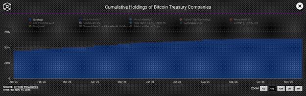這是一張累積持倉圖,而不是該變數的變化率圖,但您可以直觀地看到,隨著策略的 mNAV 溢價消失,持倉成長速度放緩。