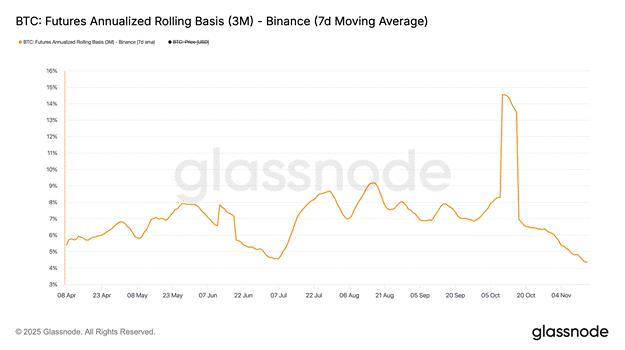 機構投資者紛紛湧入比特幣ETF,至少官方是這麼說的。正如你所看到的,4月到10月期間的淨流入資金為比特幣提供了持續的需求,即便美元流動性下降。我必須對這張圖表補充一點說明。以資產管理規模計算最大的ETF(貝萊德的IBIT US)的最大持有者將該ETF用於基差交易;他們並非做多比特幣。他們做空芝加哥商品交易所(CME)上市的比特幣期貨合約,而不是買進ETF,以賺取兩者之間的價差。 [1]這種做法具有資本效率,因為通常他們的經紀商允許他們將ETF作為其做空期貨頭寸的抵押品。