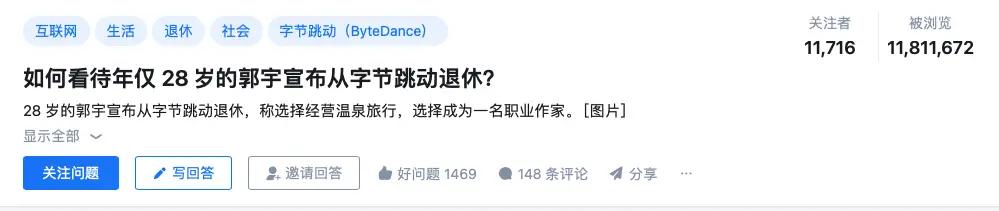 作為早期員工,他全身心投入公司核心項目的開發。字節跳動的估值在六年間暴漲百倍,郭宇手中早期獲得的股票期權隨之水漲船高。
