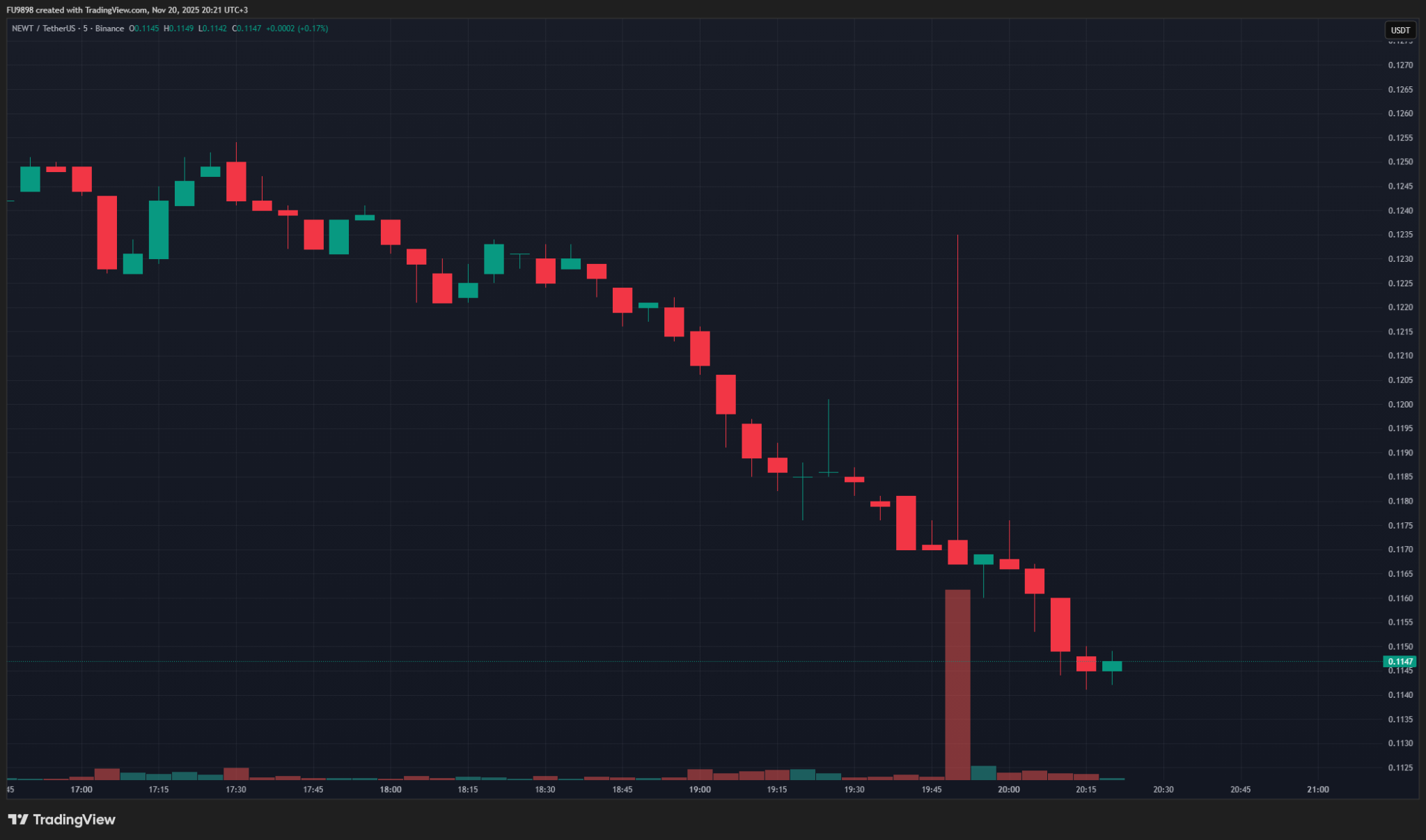 圖表顯示了NEWT價格在事件發生後的下跌情況。