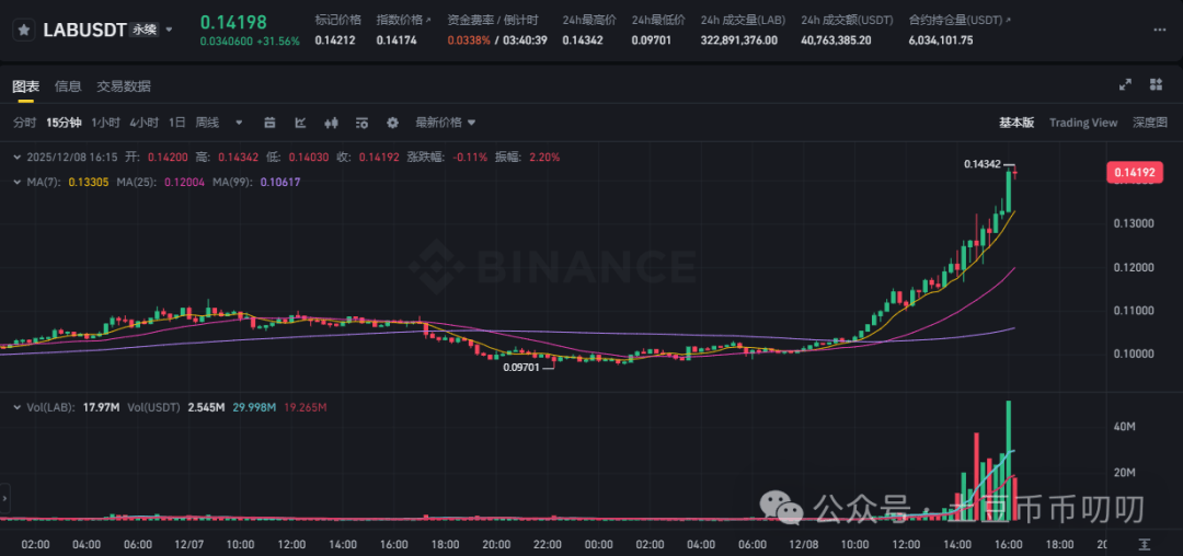 這種LAB就是典型的“只上線合約、不做生態”的空氣幣,所以一上線就暴拉,很明顯是莊家控盤嚴重,市值還很低。結局基本固定,拉一波吸引散戶接盤,然後一根大陰線直接插到谷底,巨陰險,不敢碰。