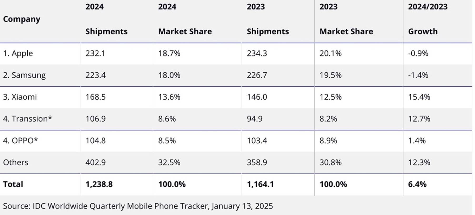 小米目前在全球份額超過 13%,擁有約 6.8 億臺活躍設備,是全球第三大智能手機制造商,僅次於蘋果和三星。