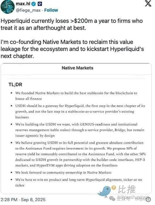 但最終,Native Markets 贏得了競標——這是一個由備受尊敬的 HYPE 貢獻者 Max Fiege、前 Uniswap Labs 首席運營官 MC Lader 和 Paradigm 研究員 Anish Agnihotri 領導的團隊。