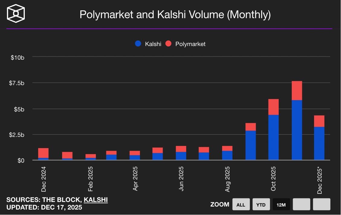 在融資方面,Kalshi 於本月初完成了由 Paradigm 領投的 10 億美元 E 輪融資,參投方包括 a16z、紅杉資本、ARK Invest 等,最新估值達到 110 億美元。而為了在市場競爭中佔據更有利的位置,12 月 12 日,Kalshi 與 Crypto.com 聯合 Robinhood、Coinbase 及 Underdog 成立了預測市場聯盟(the Coalition for Prediction Markets,CPM),以強化其合規護城河。該聯盟旨在維護預測市場安全、透明且受聯邦監管的准入環境。值得注意的是,這一聯盟將其競爭對手 Polymarket 排除在外,其背後的意圖不言而喻。